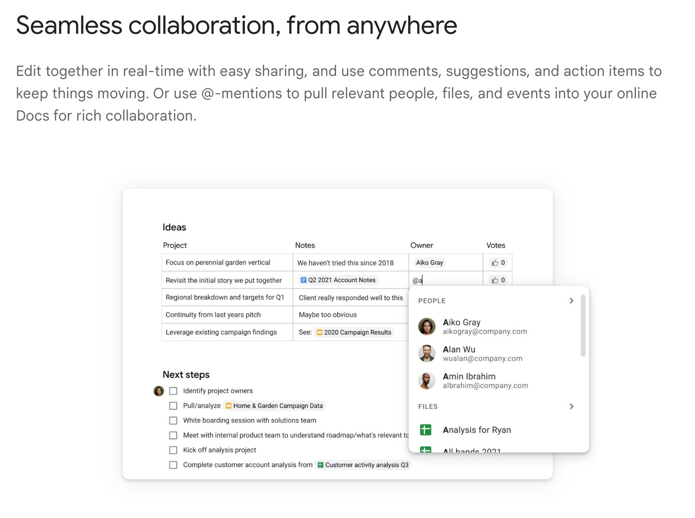 Let’s look at a side-by-side comparison. Here’s how Google talks about its collaboration features: