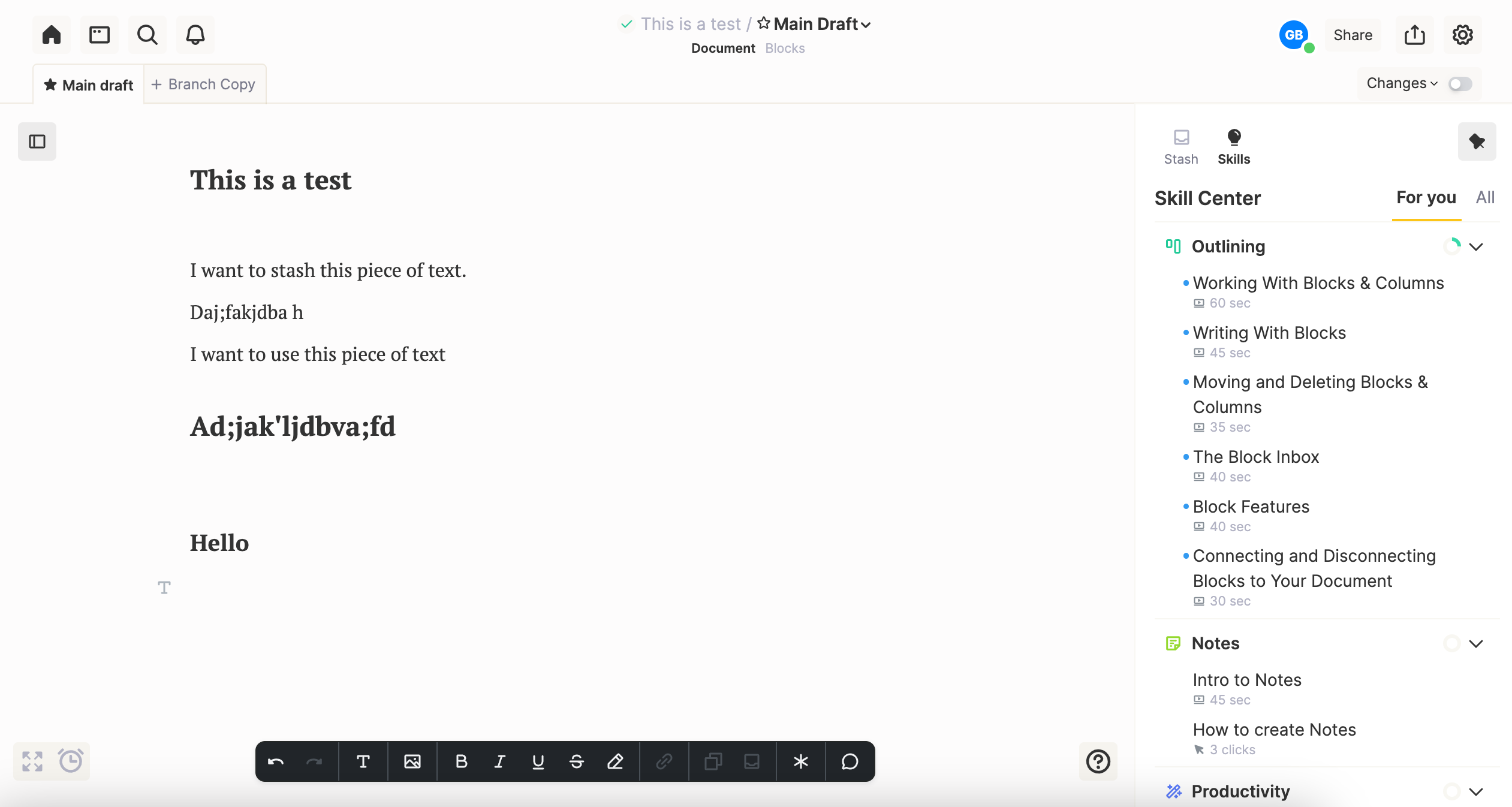 Once you sign up for the free trial of ButterDocs, they have you go through a checklist of “skills” as part of the onboarding. Each skill takes less than a minute to complete, and it helps you understand how the product is so much better than Google Docs.