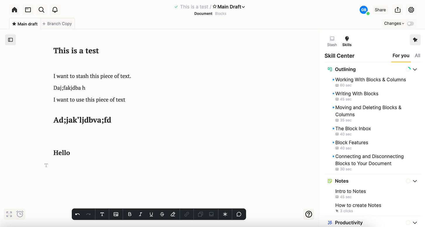 Hell, now that I know I have this problem I see it everywhere. I’m writing this post in Substack directly — and keep finding myself wishing I could stash a line here or there.