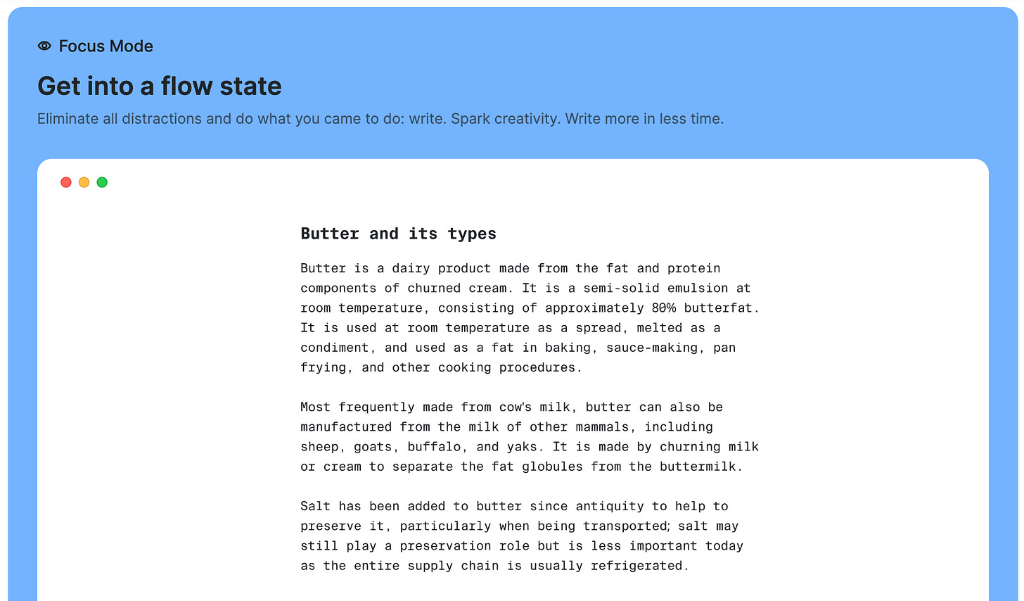 Something that baffles me about AI writing companies is that almost none of them message to actual writers. Instead, most of them have messaging that effectively says, “Cut the bloat on your marketing team and replace your humans with a robot!”